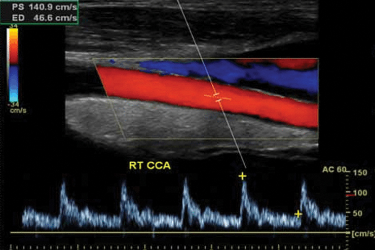 Transcranial Doppler (TCD) ultrasound provides rapid, noninvasive, real-time measures of cerebrovascular function. TCD can be used to measure flow velocity in the basal arteries of the brain to assess relative changes in flow, diagnose focal vascular stenosis, or to detect embolic signals within these arteries. TCD can also be used to assess the physiologic health of a particular vascular territory by measuring blood flow responses to changes in blood pressure (cerebral autoregulation), changes in end-tidal CO2 (cerebral vasoreactivity), or cognitive and motor activation (neurovascular coupling or functional hyperemia).